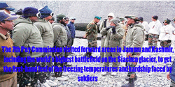 The panel spent considerable time at the Siachen base camp, interacting with soldiers and asking them about the conditions in one of the toughest areas of the world. They were also flown over the glacier and landed at a forward post. The soldiers work under extreme climatic conditions where the weather is a constant enemy. The soldiers shared their experience and talked about the harsh climatic condition they face on the line of duty. The punishing weather does not allow a person to spend more than a week at the glacier and the forward posts, they told the panel.