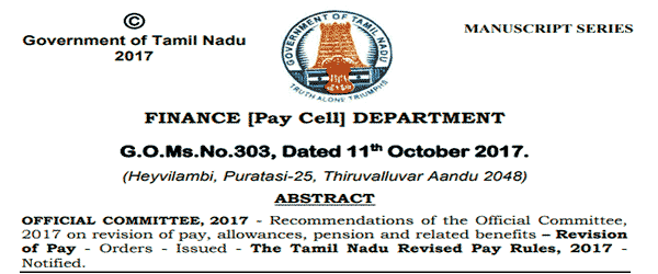 Tamil Nadu Revised Pay Rules 2017 – 7th CPC Pay Matrix and Allowance