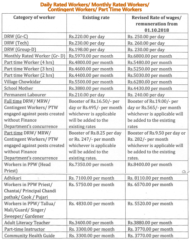 Daily Rated Workers/ Monthly Rated Workers/ Contingent Workers/ Part Time Workers engaged against posts created with Finance Concurrence, Permanent Labourers engaged under relevant rules for the Permanent Labourers, Daily Rated Workers/ Monthly Rated Workers/ Contingent Workers/ Part Time Workers engaged without creation of posts with Finance Concurrence, Persons working in Public Places of Worship etc., shall also stand revised as follows: