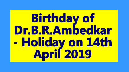 Birthday of Dr.B.R.Ambedkar – Holiday on 14th April 2019