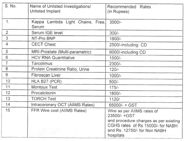 It is now decided to notify CGHS package rates for the following investigations which were not available and now included in CGHS rate list 2020