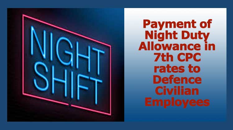 Payment of Night Duty Allowance in 7th CPC rates to Defence Civilian Employees
