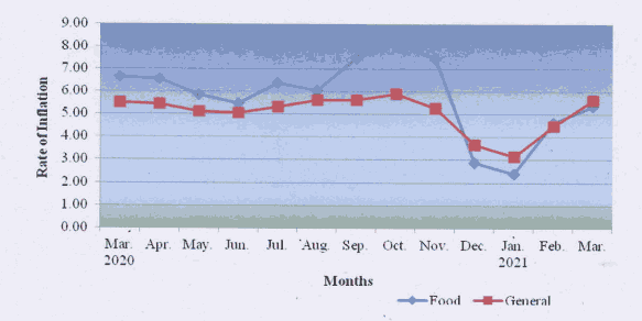 Inflation for March, 2021 went up to 5.64 per cent compared to 4.48 per cent of previous month. Similarly, Food inflation also rose to 5.36 per cent from 4.64 per cent in the previous month.
