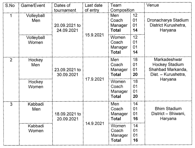 All India Civil Services Volleyball Hockey and Kabaddi Tournaments : Central Civil Services Cultural and Sports Board (CCSCSB) is organizing All India Civil Services Tournaments 2020-21 in the following disciplines of sports in collaboration with Government of Haryana as per details given below as a special case