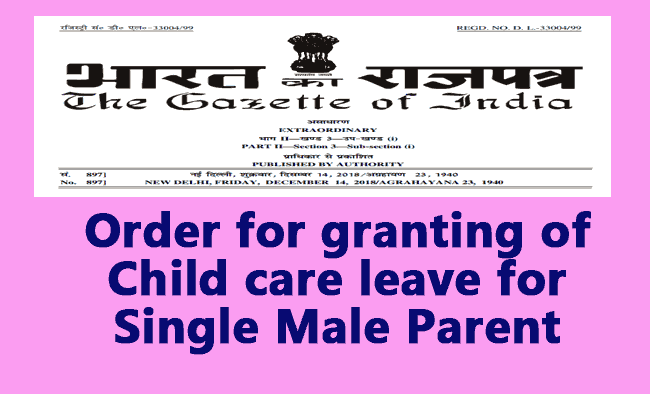 DoPT has issued Notification dated 11th December 2018 for granting of Child care leave for Single male parent